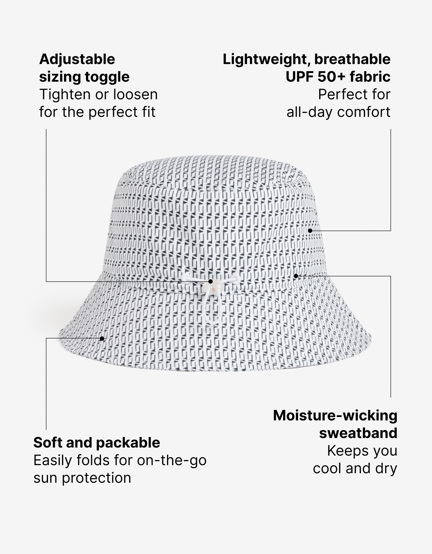 Crafted from soft, lightweight fabric, this bucket hat is exceptionally comfortable and durable. It folds down easily for convenient storage in your bag.