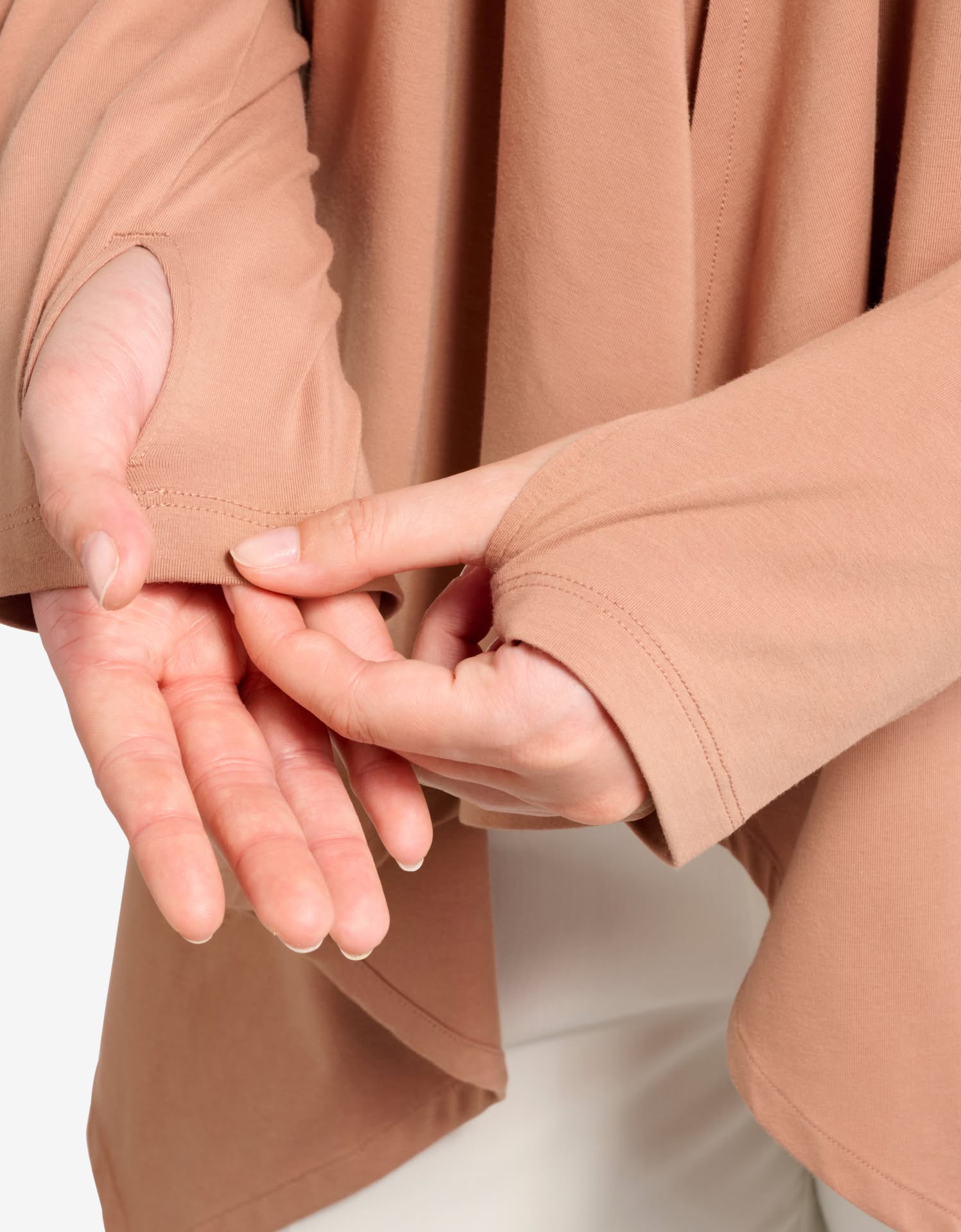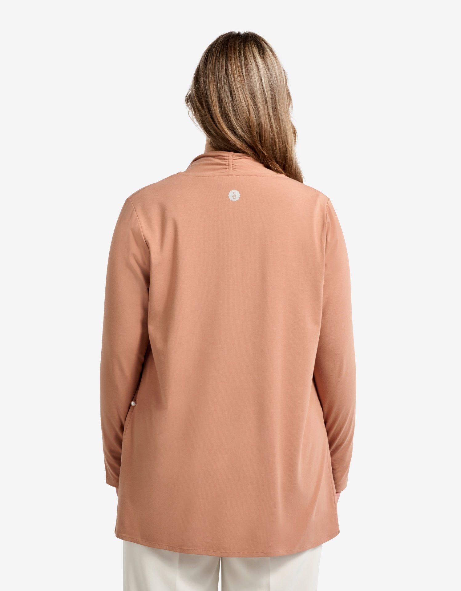 Stay stylish and protected with our UPF 50+ Luxe Sun Wrap. Designed for women with sensitive skin, it’s crafted from breathable cotton-bamboo and features elegant buttons, a ruched collar, and thumbholes for added coverage, so you can enjoy your day in the sun with confidence.