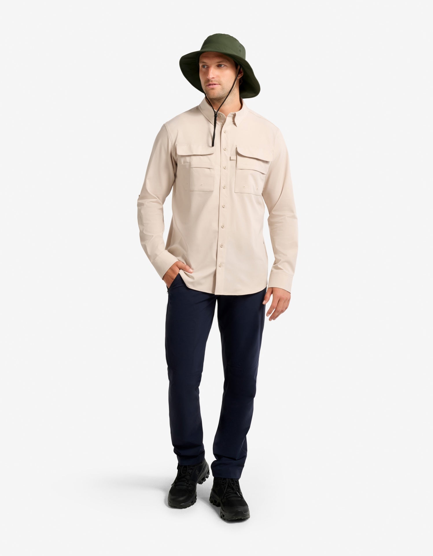 Designed for all-day adventures, the Men’s Expedition Sun Hat delivers UPF 50+ sun protection to help shield your face, ears, and neck from harmful rays. A 2.75" (7 cm) front brim and 4" (10 cm) back brim offer extended coverage where you need it most, while mesh ventilation panels and lightweight, breathable fabric keep you cool and comfortable. A built-in sweatband helps manage moisture, making this hat a dependable choice for hiking, fishing, and long expeditions.