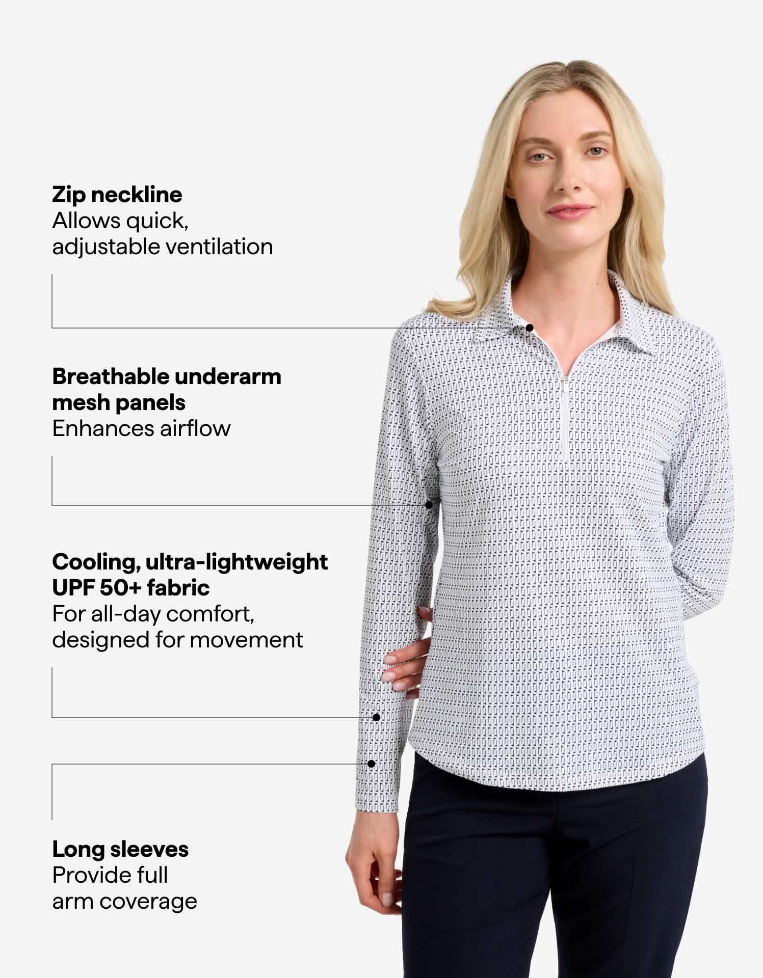Home / Women / Clothing / Polos & Shirts Long Sleeve Printed Zip Polo Shirt UPF 50+